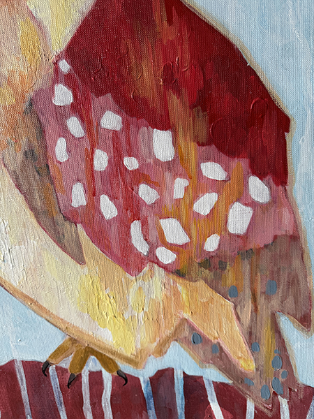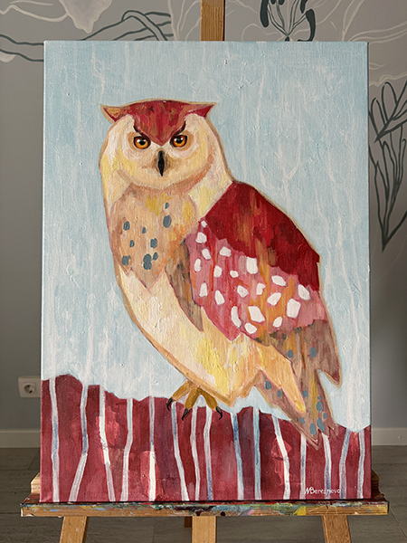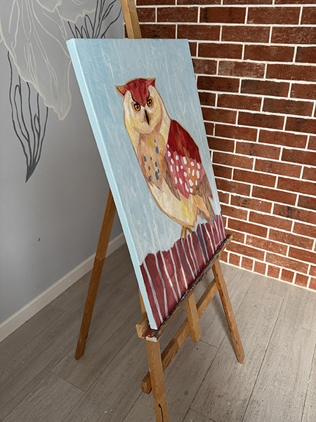 Картина выполнена акриловыми красками на льняном холсте, натянута на подрамник. Края картины прокрашены, ее можно вешать без рамы. Картина покрыта лаком от выцветания и пыли, она сохранит яркость на десятилетия. Размер 70*50 см, ширина подрамника 2 см.