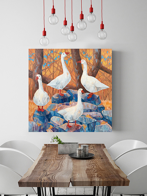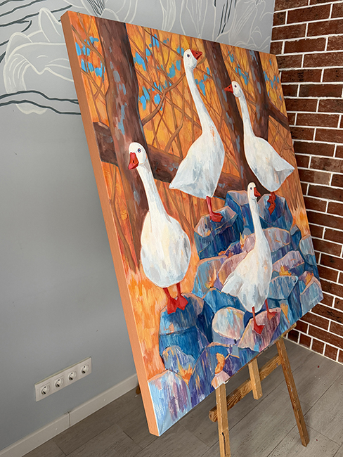 Гуси символизируют единство и гармонию с природой. Их белизна – это олицетворение чистоты и стремления к идеалу. А расположение на вершине каменной горы говорит о достижении высшей точки развития, ведь гуси – это само совершенство. Во всяком случае, именно так они себя ощущают. А тем, кто с этим не согласен, лучше уносить свои ноги подальше.